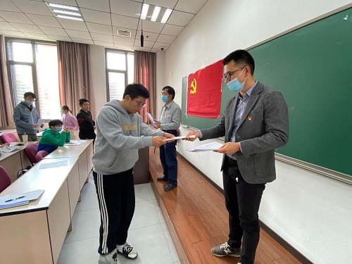 仪式伊始,教育公司党务秘书张瑞介绍本次会议流程,向各位学员介绍了秋季学期党课学习小组的学习内容和纪律要求,明确了党课学习小组的严肃性及重要性。紧接着,同学们依次向公司副书记递交了入党申请书。