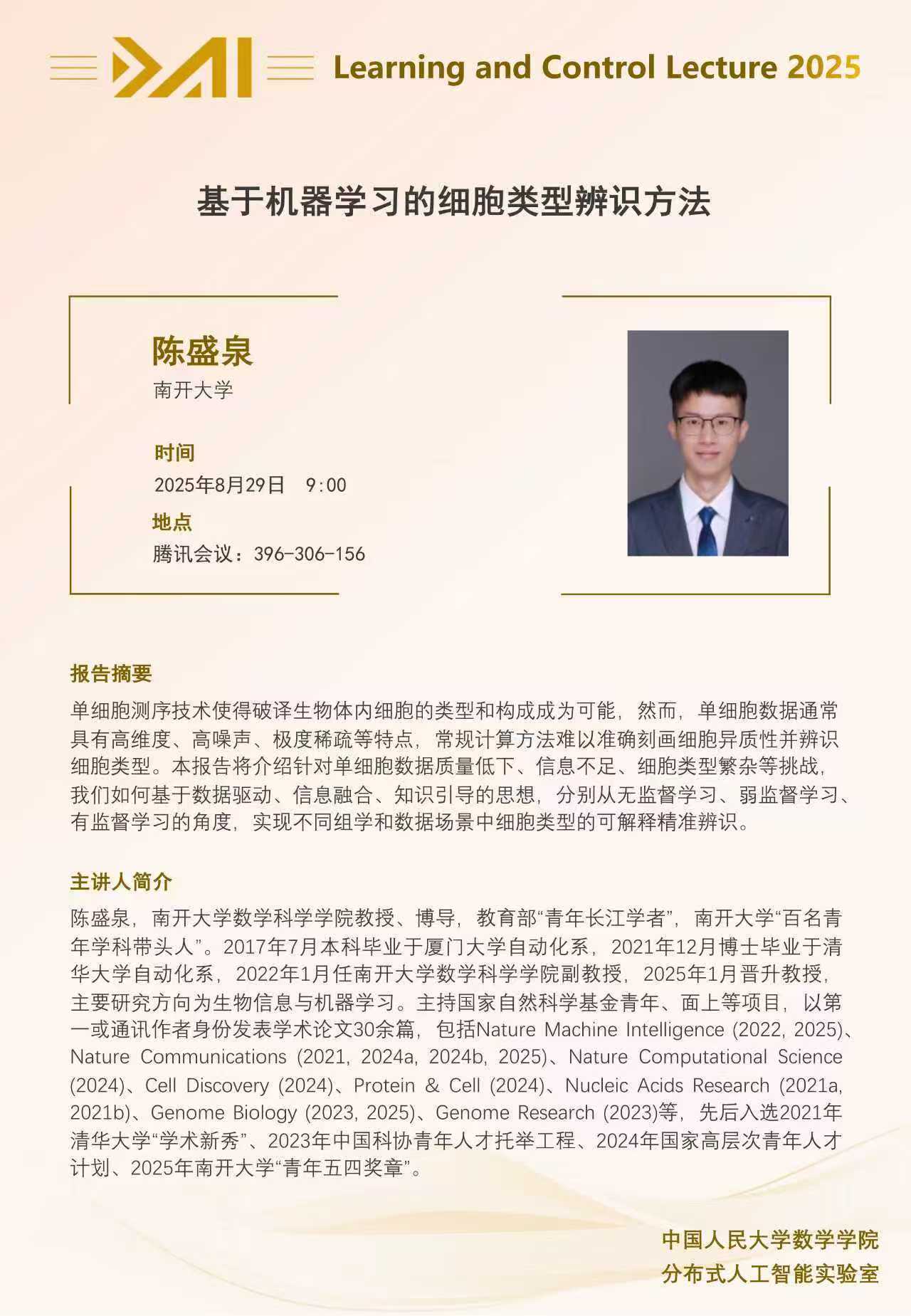 讲座预告:基于机器学习的细胞类型辨识方法