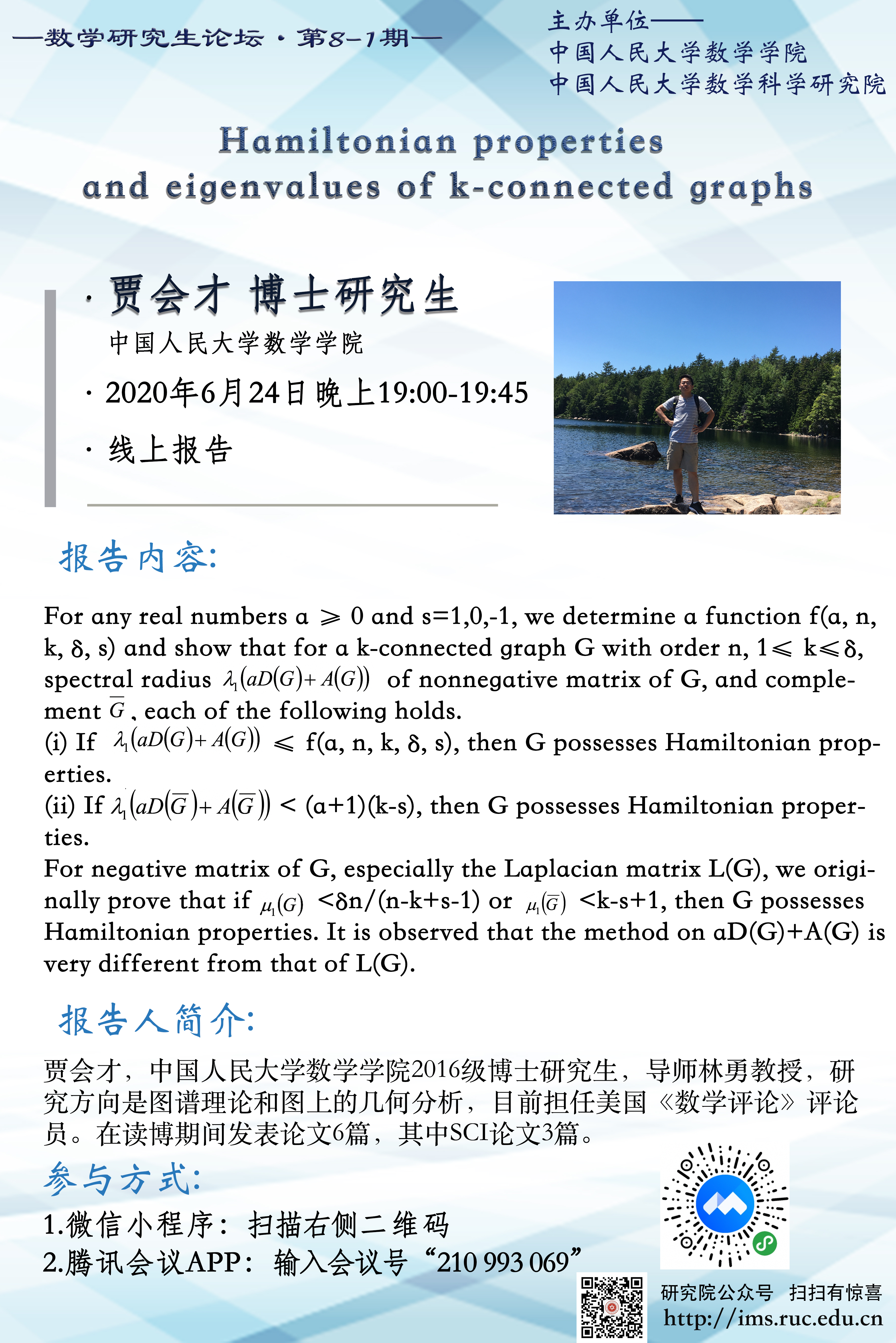 williamhill英国威廉希尔研究生论坛 8-1期 —Hamiltonian properties and eigenvalues of k-connected graphs