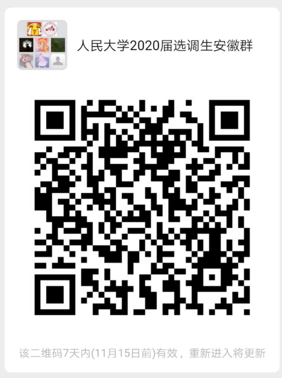 扫描下方二维码加入“人民大学2020年安徽选调群”,如群满100人,可加微信号:jicengjiuye,验证消息为“姓名+公司+2020年安徽选调群”