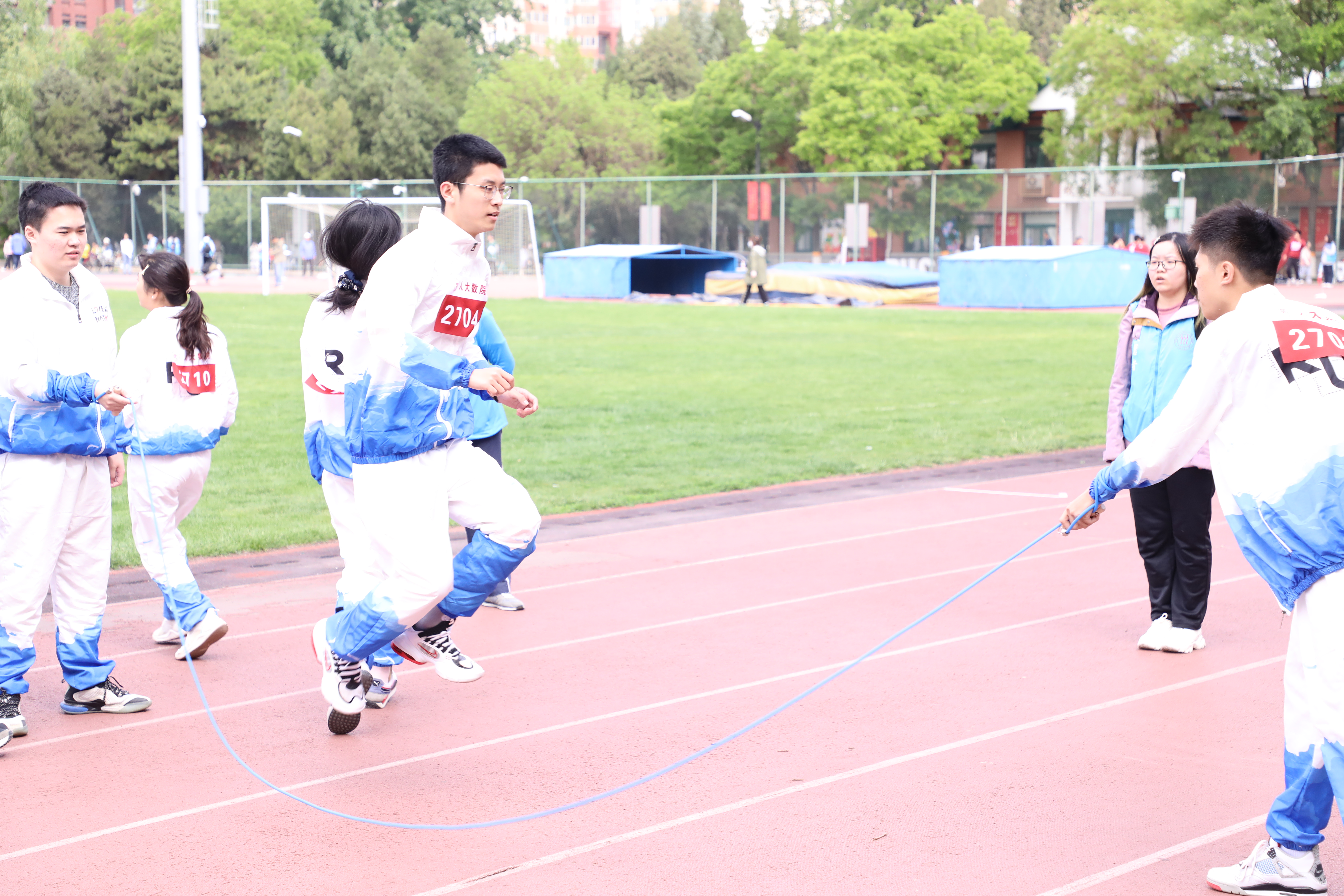 在员工组趣味项目8字跳绳的比赛中,数院的队员们配合默契,在欢笑声中展现出团结协作、勇往直前的拼搏精神,为观众们展现出一派崭新的风貌。