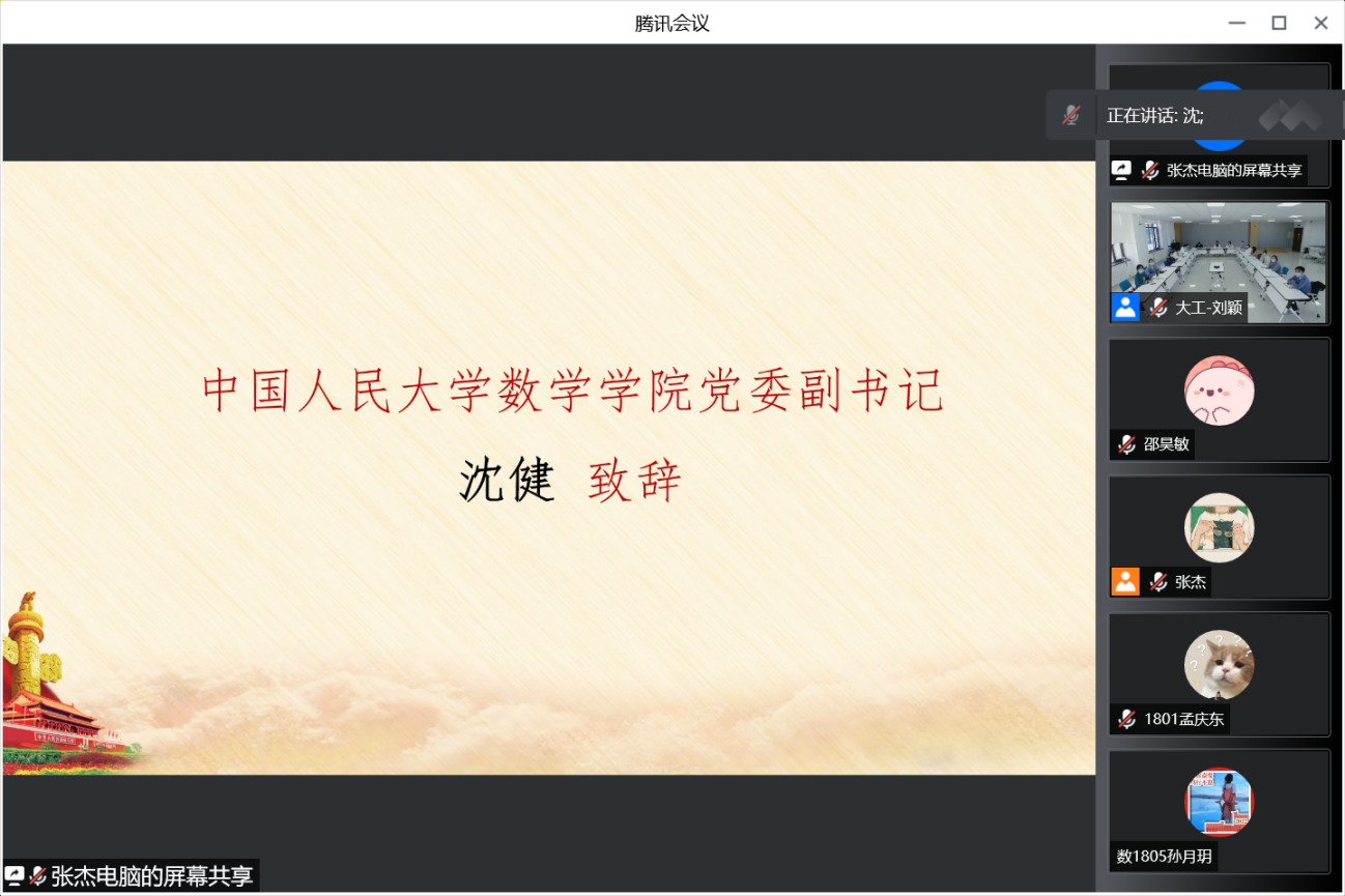 williamhill官方网站公司党委副书记沈健,大连理工大学数学科学公司党委副书记、纪委书记高兰,大连理工大学数学科学公司党委副书记兼副经理孙壮出席本次会议。会议由williamhill官方网站2019级硕士党支部书记张杰主持。