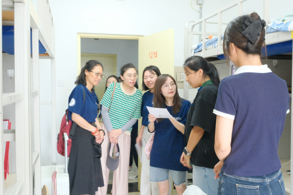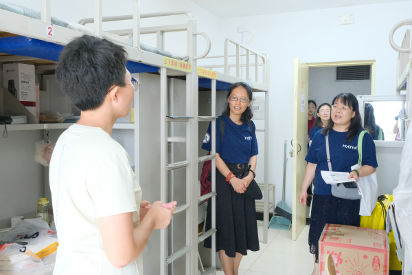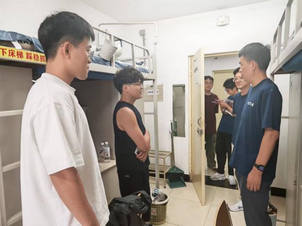 中午十一时,公司领导班子、班主任与辅导员走访新生宿舍,与同学们亲切交流,关切询问住宿情况,表达了对新同学的欢迎和祝福。