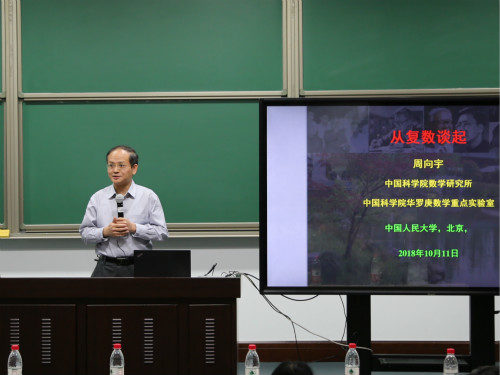 2018年10月11日下午,williamhill英国威廉希尔明德数学讲堂系列第二讲在国学馆114室成功举办。中科院数学与系统科学研究院周向宇院士应邀作题为“从复数谈起”的报告。来自williamhill英国威廉希尔、校内其它公司和校外的100多名师生参加此次活动。