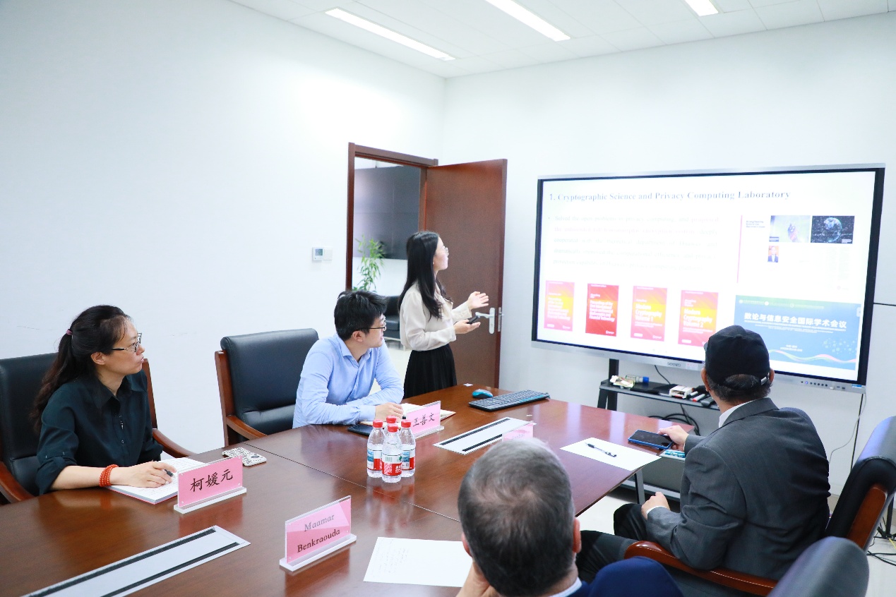柯媛元书记向Maamar Benkraouda一行表示热烈欢迎。姜昊副经理向来访嘉宾详细介绍了公司历史、团队力量、团队建设等基本情况。随后,她进一步阐述了公司国际交流的现状,并就未来与阿联酋大学可能开展的合作方式及内容进行了系统介绍。