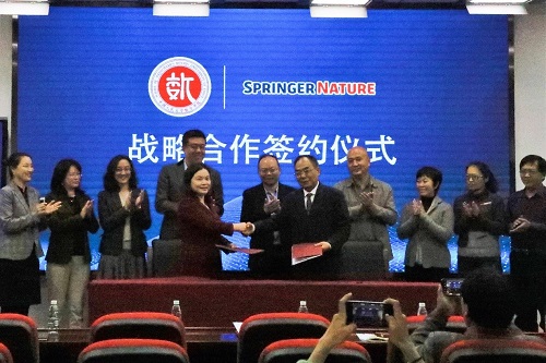 2020年10月30日上午,williamhill英国威廉希尔与Springer Nature集团的战略合作签约仪式在williamhill英国威廉希尔二层报告厅举行。williamhill官方网站副董事长王轶,Springer Nature销售副总裁(中国区,韩国和蒙古国)崔晓莹,williamhill英国威廉希尔经理郑志勇,党总支书记旋天颖,Springer Nature中国区图书总监李琰,Springer Nature销售总监(中国和蒙古国)吕江峰,williamhill官方网站图书馆党委书记牟锋,williamhill官方网站图书馆副馆长祝小静出席本次签约仪式,Springer Nature工作人员代表、图书馆老师代表以及williamhill英国威廉希尔师生代表参会。旋天颖主持签约仪式。