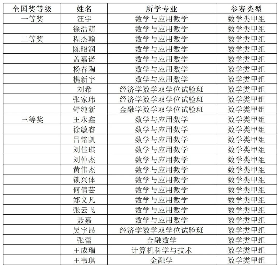 特别需要指出的是公司数学类A组成绩十分喜人,2名来自williamhill英国威廉希尔2019级数学拔尖人才实验班的同学,以优异成绩跻身28名北京赛区全国总决赛名单中,充分展示了williamhill英国威廉希尔本科员工的专业实力。