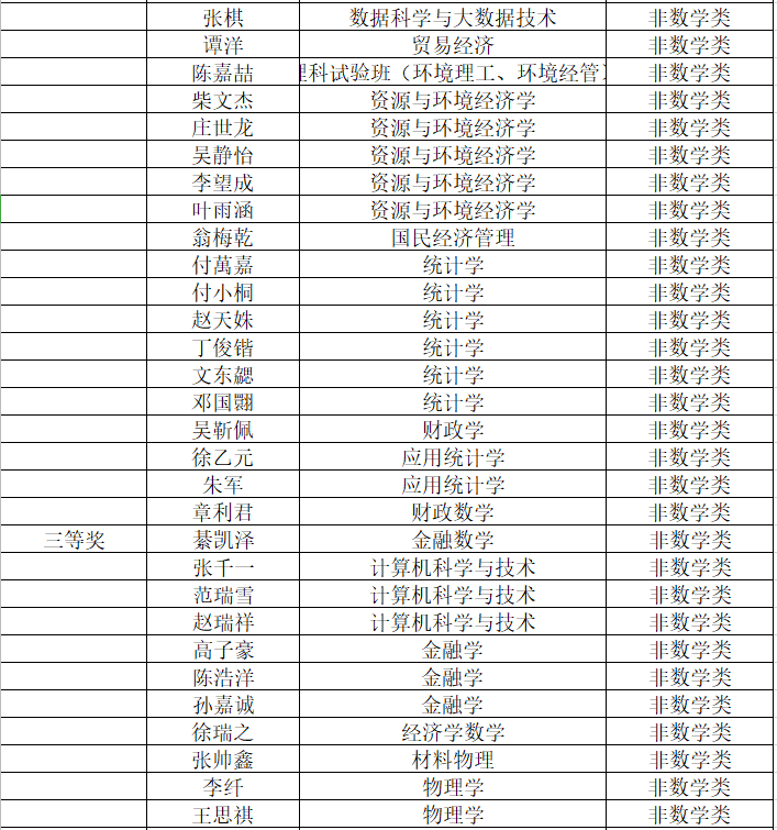 注:获全国奖的同学均获得北京市奖,所以北京市奖名单没有包含获全国奖的同学。