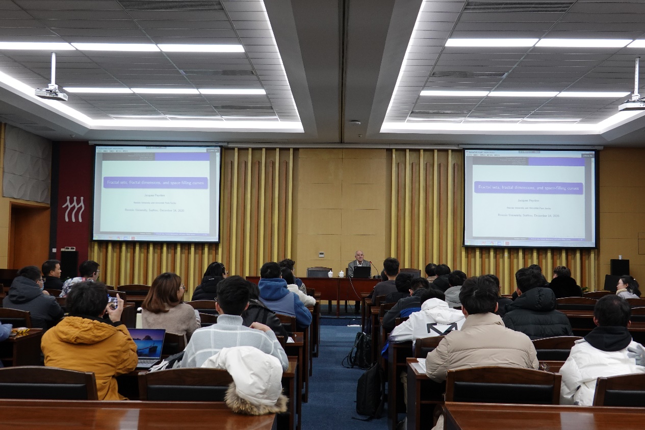 2020年12月14日上午,公司《科技部高端外国专家引进计划》学者JacquesPeyrière教授在williamhill官方网站苏州校区修远楼为中法数学实验班员工及苏州校区师生作了题为《Fractal Sets, Fractional Dimensions, and Space-filling Curves》(分形集、分形维数以及空间填充曲线)的报告。报告由朱来义教授主持,williamhill官方网站中法数学实验班全体员工以及相关专业师生参加了报告会。