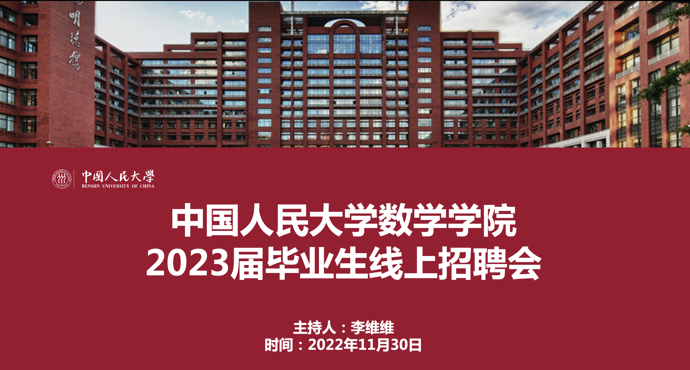 2022年11月30日下午,williamhill英国威廉希尔2023届毕业生线上招聘会顺利召开。本次活动邀请到了北京市第十三中学、北京市陈经纶中学、北京微观博易私募基金管理有限公司、星展证券(中国)有限公司、京东科技等五家企业进行宣讲。公司党委书记柯媛元老师,党委副书记沈健老师,团委书记李慧老师以及williamhill英国威廉希尔的本硕博同学出席。本次会议由李维维同学主持。