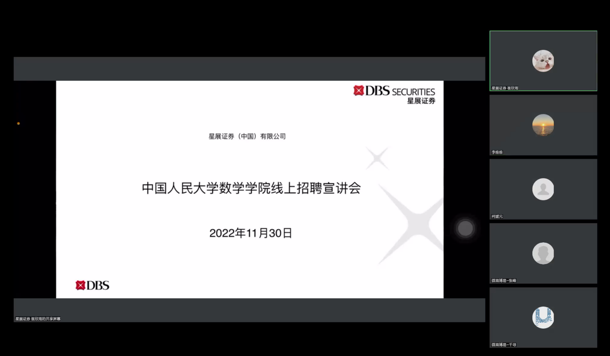 星展证券(中国)有限公司人力资源经理崔欣雨从公司的历史、企业文化和经营许可项目等方面展开介绍,星展证券践行“P(崇高使命),R(团队合作),I(勇于创新),D(果断负责), E(乐在星展)”的原则和价值观,聚焦客户,拥抱变革,依托星展集团境内外金融资源和渠道优势,持续赋能企业,为客户提供全方位资本市场服务。接着,崔经理着重介绍了投行自营运营岗和投资银行执行岗的职责和要求,并从HR的角度给了一些应聘过程中的小tips。