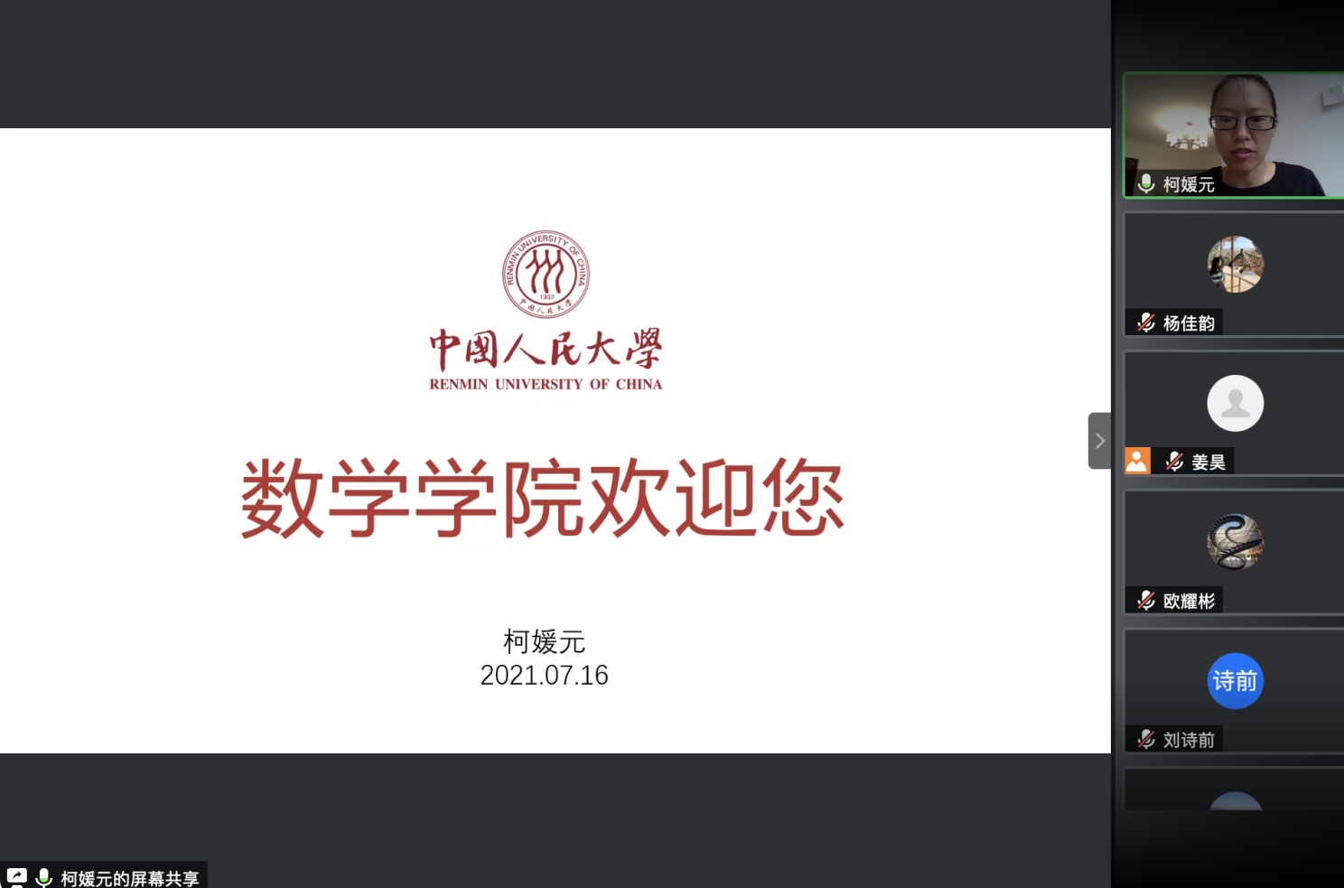 williamhill英国威廉希尔副经理柯媛元老师为营员们详细梳理了人民大学数学学科的发展历程及突出特色。柯老师指出,人大数学学科历史久远,结合人民大学在人文社会科学的优势,在交叉学科方面具有天然独到的发展优势并呈现出积极的发展势头。在国际合作方面,人民大学与法国、加拿大等知名高校开展了广泛而深入的合作。她相信,同学们在加入williamhill英国威廉希尔和数学科学研究院,未来可期。