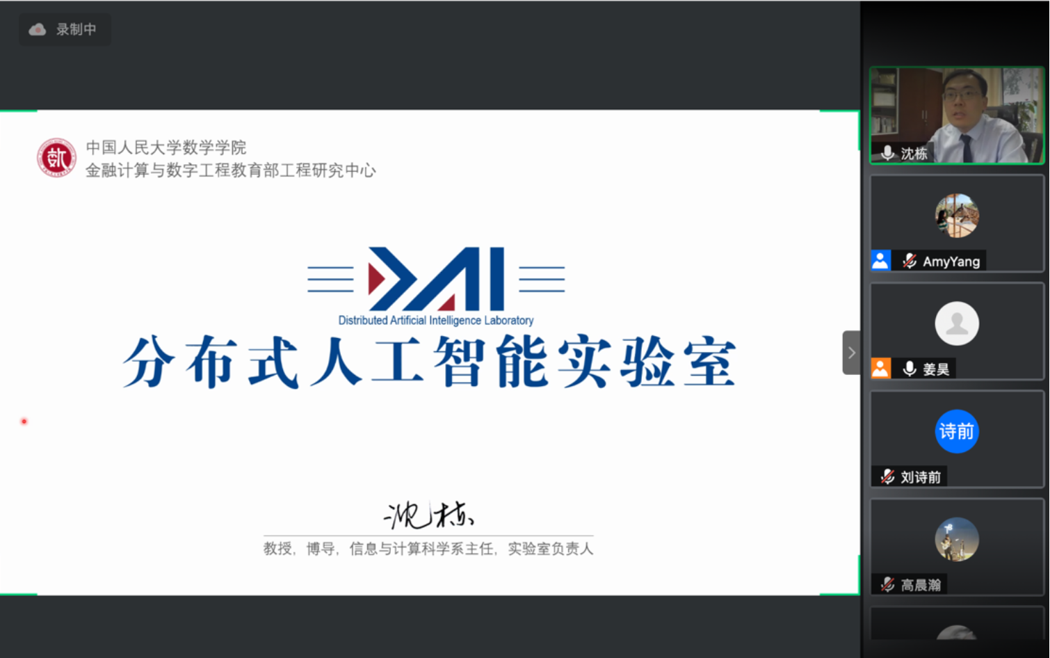 本次夏令营还加入了金融计算与数字工程教育部工程研究中心的介绍环节:袁勇教授介绍了区块链技术在国家战略发展中的重要意义,以及区块链实验室的相关背景、研究方向、合作单位等;沈栋教授为大家介绍了分布式人工智能实验室的研究特色、研究课题以及未来的战略发展方向,欢迎同学们加入到团队中领略高处的无限风光。