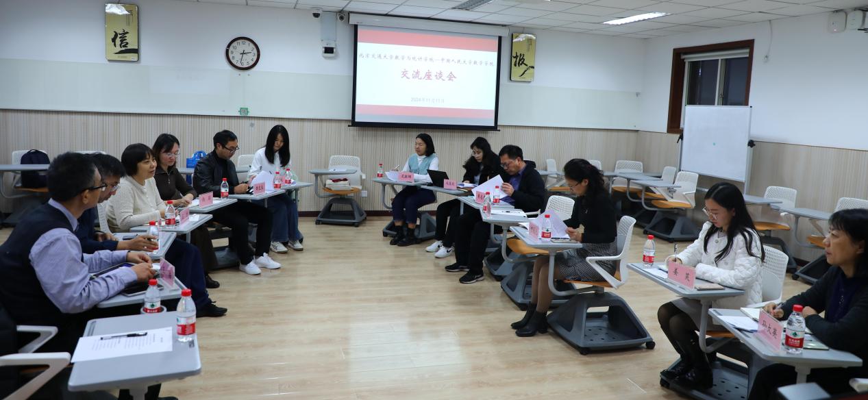 11月11日下午,北京交通大学数学与统计公司党委书记王烜、经理于永光一行6人来公司开展调研交流,公司党委书记柯媛元参加座谈并主持交流会。北京交通大学数学与统计公司党委副书记王浩、综合办主任尚颖、培养办主任郭昱良、专职组织员王雪纯,公司副经理黄志勇、副经理姜昊、办公室主任孙大英、本科教务秘书赵春晓、团委书记艾提娜参加交流。
